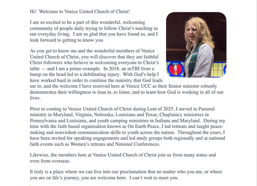 Venice United Church of Christ (VUCC) is a local congregation of the United Church of Christ (UCC).