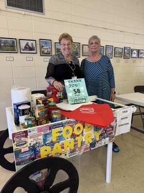 Our church contributes monetary funds and members can deposit donated foods in boxes to be delivered or picked up.