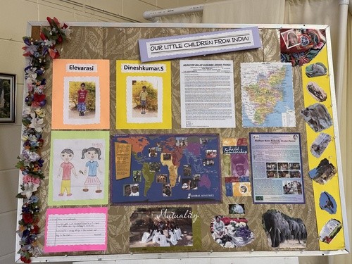 Through the Global Ministries Child and Elder Sponsorship Program, VUCC sponsors Elavarasi and Dinesh Kumar in India. We receive updates periodically on their progress in school, sports, and recent photos. All information and photos are placed in Naar Hall.